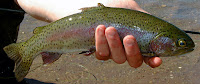 Ventured out again, my summer fishing partner decided to take a break from the snow to enjoy a day on the water. Sunny skies gave way to a beautiful warm day. There was a prolific Midge hatch going on. This particular spot is not known for its dry fly action. The fish weren't rising, but feeding they were feeding on nymphs and emergers. We tied on the secret flies and began to pick up fish, well I began to get into them, Andy was still trying to figure out the nymphing game. After many hits and even more LDR's he finally got one, then another. Great day to be out and a variety of fish too boot; Browns, Rainbows and Rocky Mountain Bone's. Ended the day with over a dozen and Andy had a few including this nice fat football bow.